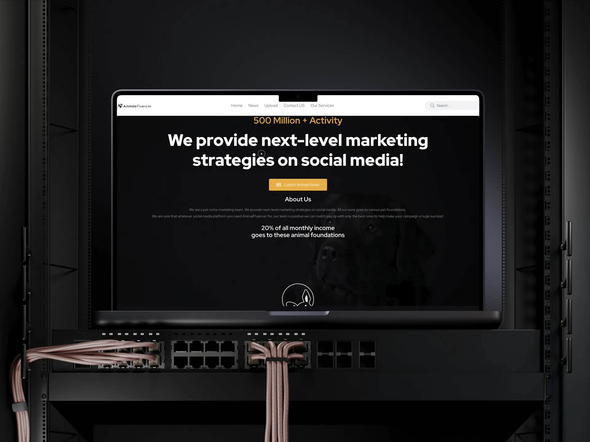 Website for a pet-niche social media marketing service; a share of revenue goes to animal foundations.