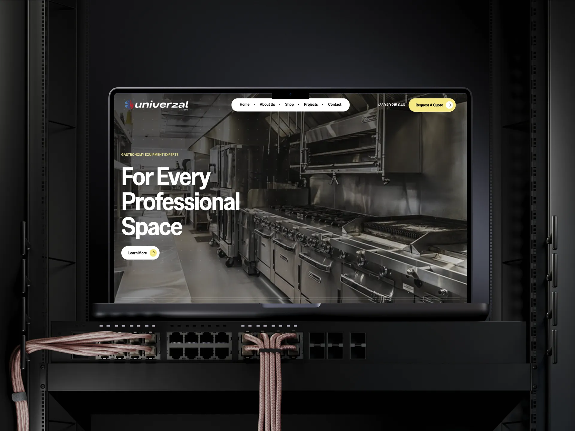 Brand identity for Univerzal — they design, supply, and install professional gastronomy equipment for restaurants, hotels, bakeries, and production facilities. Based in North Macedonia (univerzal.com.mk). Logo and guidelines.